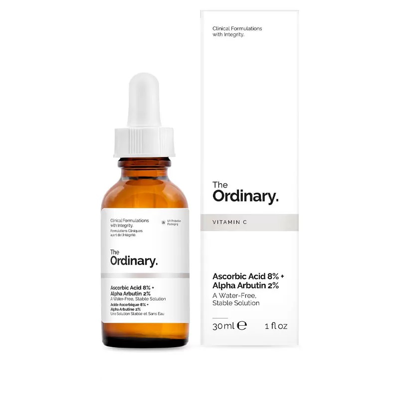 سرم اسکوربیک اسید و آلفا آربوتین اردینری یکی از پرفروشترین محصولات اوردینری بوده که یک سرم ضد پیری بوده و بافت و رنگ ناهموار پوست را به حداقل می رساند. این سرم همچنین در کاهش جوش و آکنه ها موثر بوده و پوست را یکدست می کند. این محصول برای انواع پوست ها مناسب است و پوستی سالم و درخشان به ارمغان می آورد. سرم آسکوربیک اسید 8% + آلفا آربوتین 2% اوردینری دارای ترکیباتی کاملا وگان و گیاهی می باشد. این سرم بدون آب، الکل، روغن، سیلیکون، گلوتن، پارابن، سولفات، روغن معدنی، فرمالدئید و عطر فرموله شده و تست حیوانی نیز ندارد.