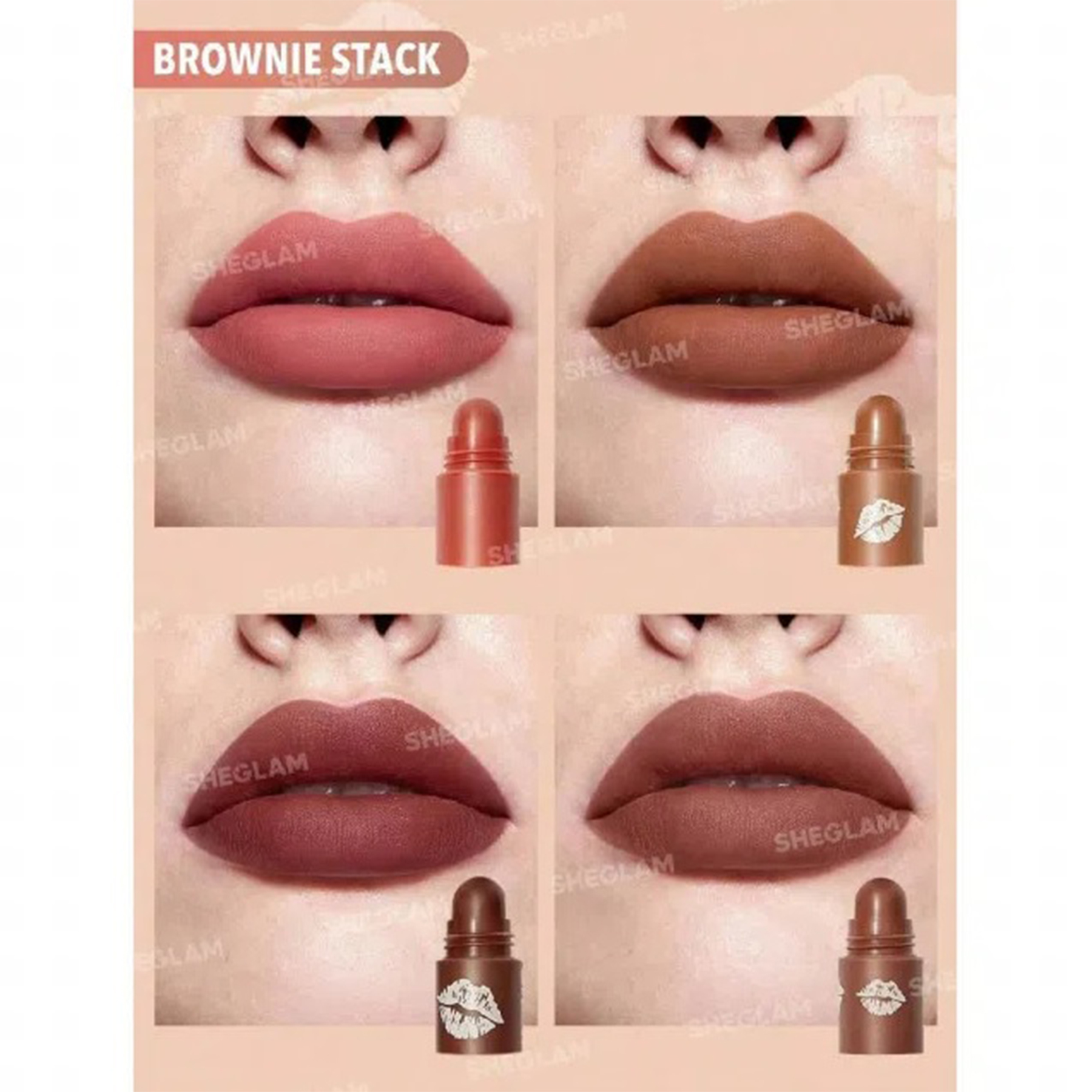 ویژگی های رژ لب جامد مات لیپ استیک براون شیگلم - رنگ Brownie Stack